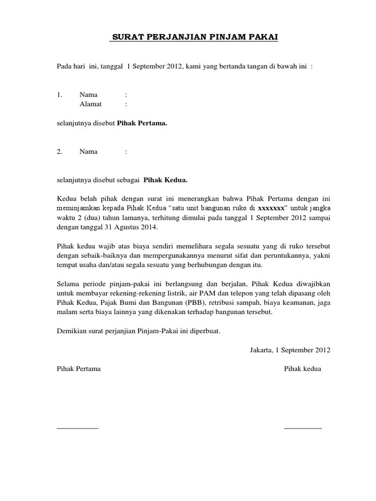surat perjanjian pinjam pakai kendaraan dinas. 7 contoh format surat permohonan narasumber berbagai acara doc. contoh surat pinjam pakai barang inventaris kantor doc. contoh surat pernyataan pinjam pakai tanah. Cahaya permata insan bertindak sebagai pihak kedua, yang meminjam fasilitas kantor di jl.